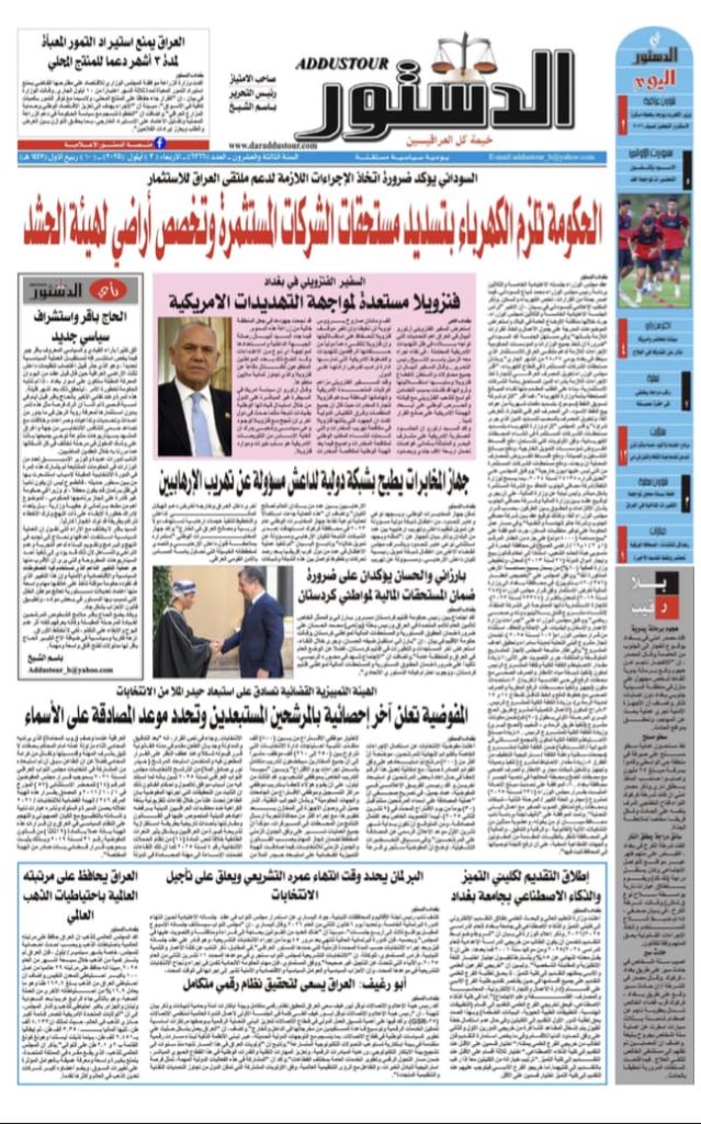 Bagdad, 3 de septiembre de 2025.- En una entrevista exclusiva con el periódico iraquí Al Qarar, con el periodista Saad Al Naji, el embajador Arturo Gallegos Ramírez resaltó el liderazgo del Presidente Nicolás Maduros Moros en América Latina y en la relación con los países del Medio Oriente; así como las características democráticas del Proyecto Bolivariano de cara a las maniobras militares hostiles de la administración de Estados Unidos (EEUU), que pretenden intimidar a la población venezolana a través de un conjunto de pretextos artificiales, ridículos y mal elaborados, con el objeto de reactivar la doctrina Monroe en América Latina.